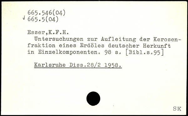 Untersuchungen zur Aufleitung der Kerosen-fraktion eines Erdöles deutscher Herkunft in Einzelkomponenten