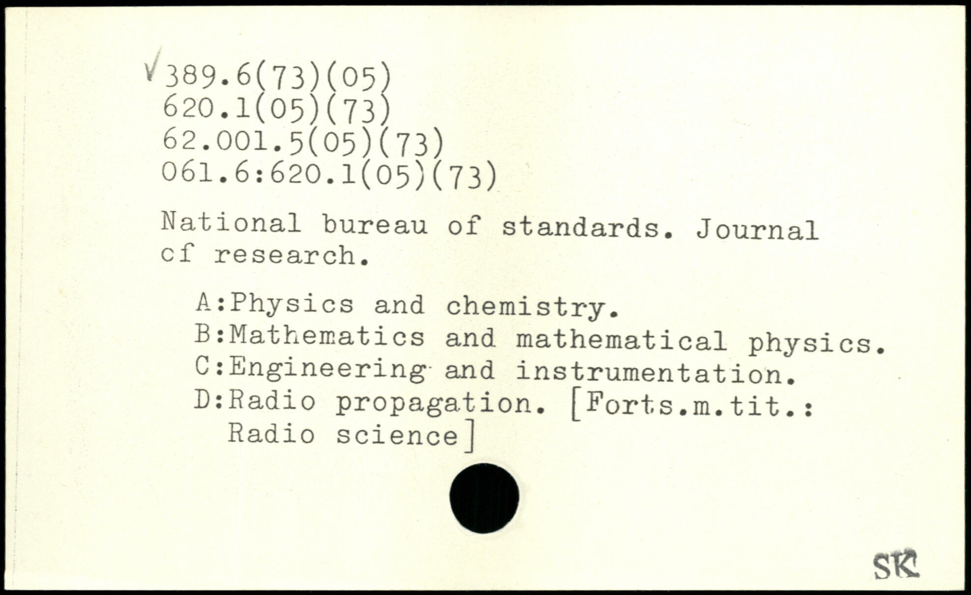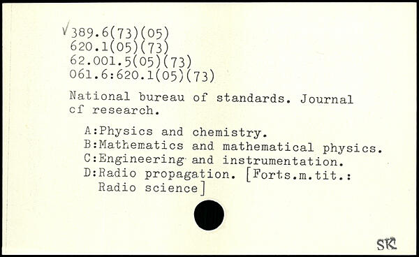 National bureau of standards. Journal cf research. A:Physics and chemistry. B:Mathematics and mathematical physics. C:Engineering and instrumental ion. DiRadio propagation. [Forts.m.tit.: Radio science] _Stt