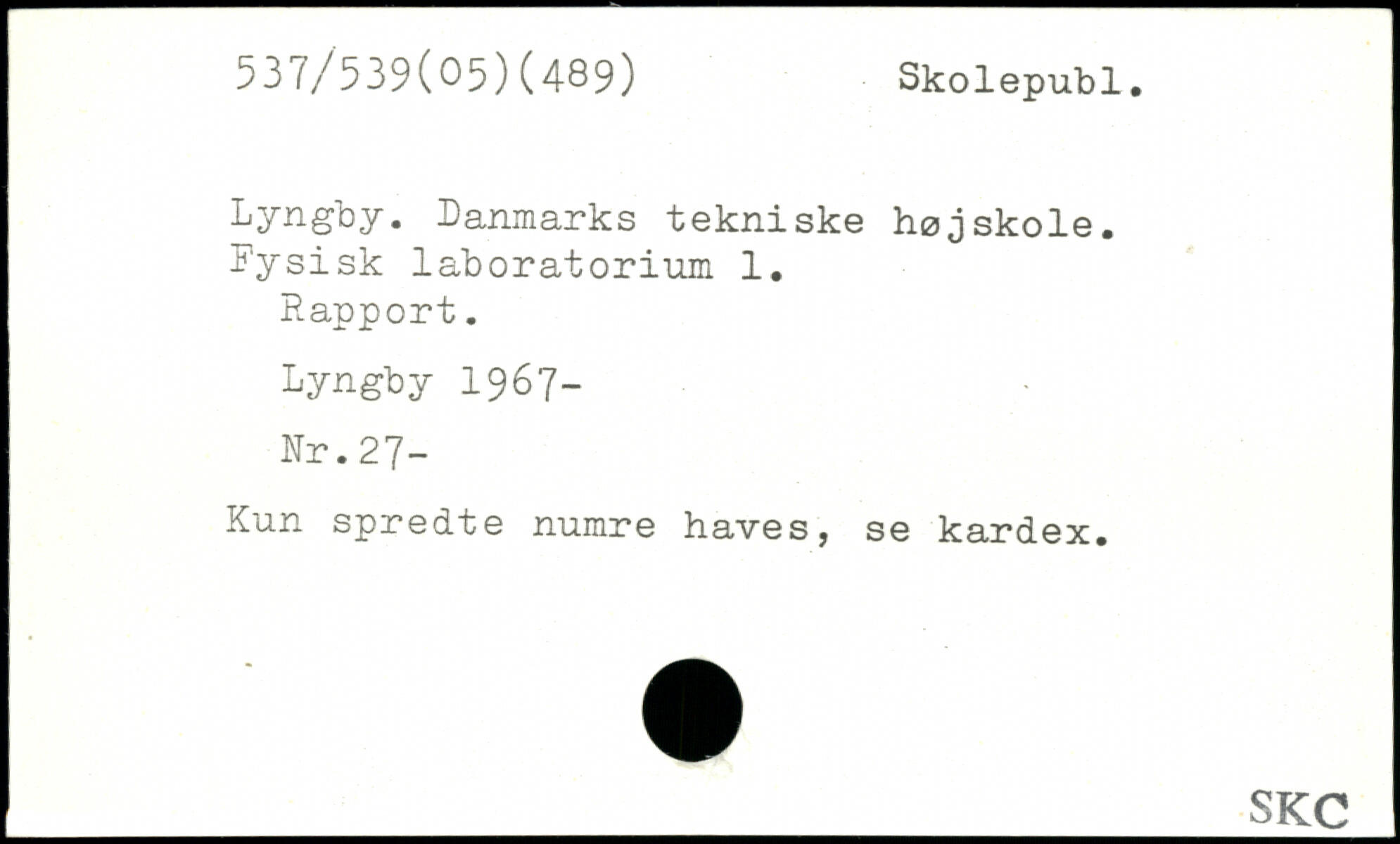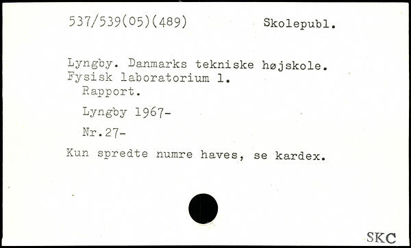 Lyngby. Danmarks tekniske højskole. Fysisk laboratorium 1. Happort. Lyngby 1967- Nr.27- Kun spredte numre haves, se kardex.