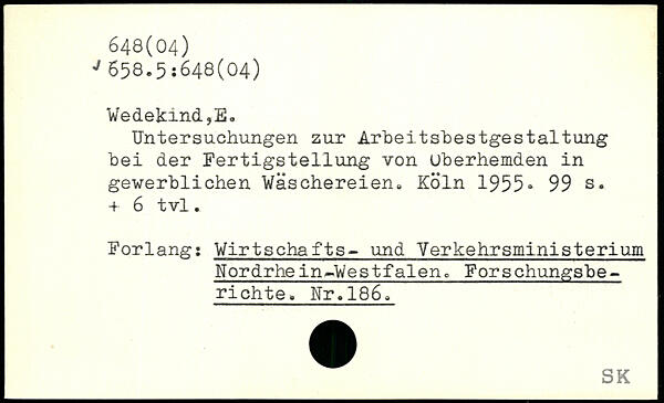 Untersuchungen zur Arbeitsbestgestaltung bei der Fertigstellung von Oberhemden in gewerblichen Wäschereien.
