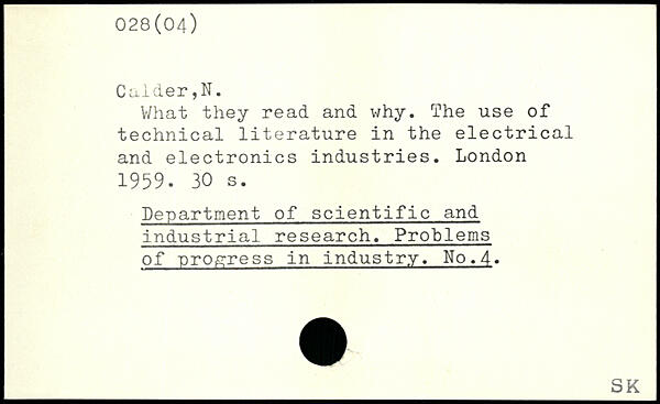 What they read and why. The use of technical literature in the electrical and electronics industries.