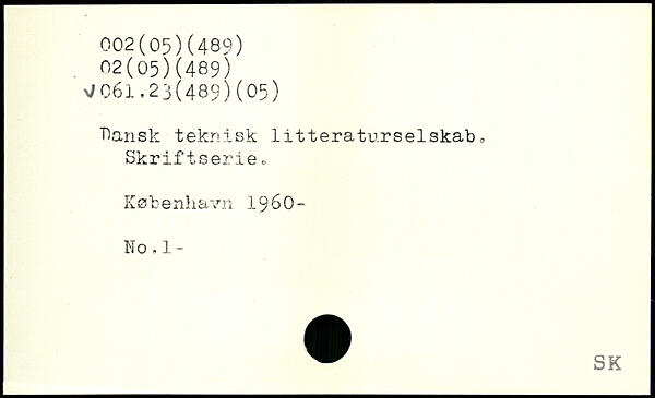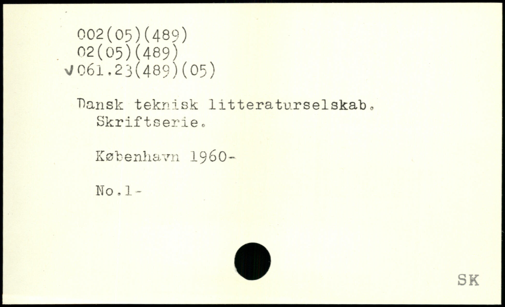 "Hansk teknisk litteraturselskab. Skriftserie o Købe nhavn 19 6 0 - No. 1 -