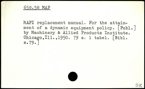 MAPI replacement manual. For the attainment of a dynamic equipment policy. [Publ.] by Machinery & Allied Products Institute. Chicago,111.,1950.