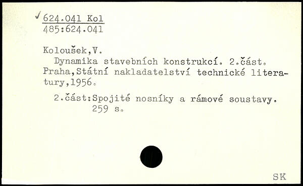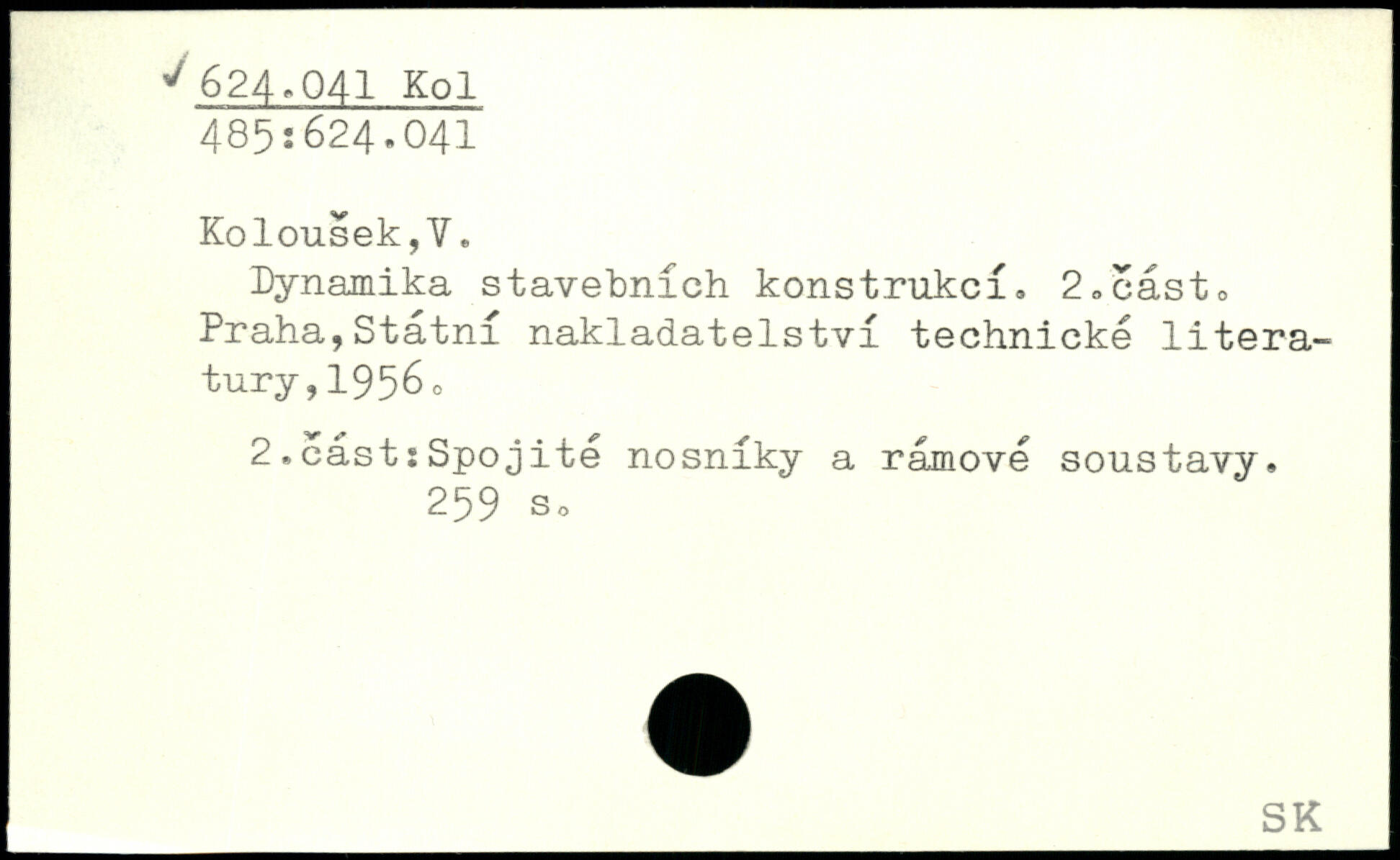 Dynamika stavebnich konstrukci. 2.cast, Praha,Statni nakladatelstvf technické litera, tury,195éo 2.cast :Spojité nosniky a râmové soustavy.