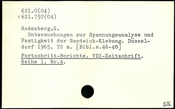 Untersuchungen zur Spannungsanalyse und Festigkeit der Sandwich-Klebung. Düsseldorf 1965.
