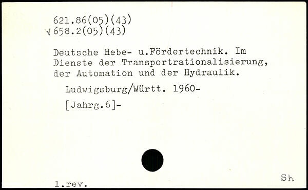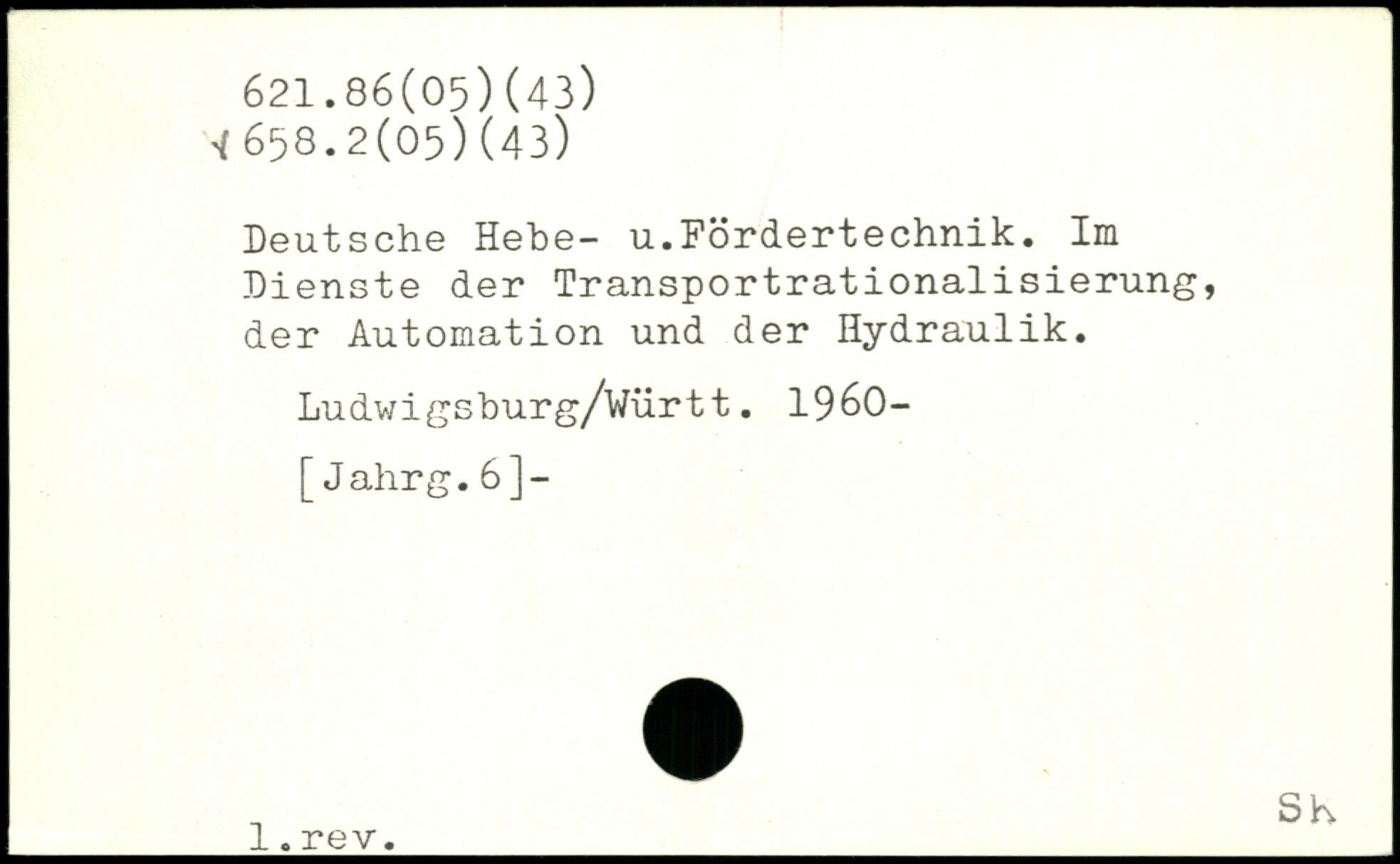 Deutsche Hebe- u.Fördertechnik. Im Dienste der Transportrationalisierung, der Automation und der Hydraulik. Ludwigsburg/Württ. 1960-