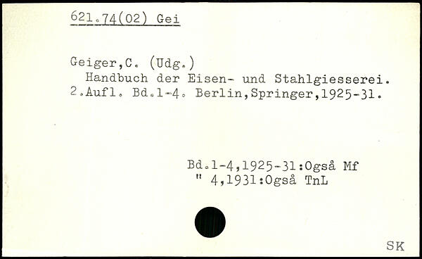 Handbuch der Eisen- und Stahlgiesserei. 2aAufl. Bdsl-4o