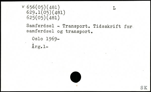 Samferdsel - Transport. Tidsskrift for samferdsel og transport. Oslo 1969- Årg.l-