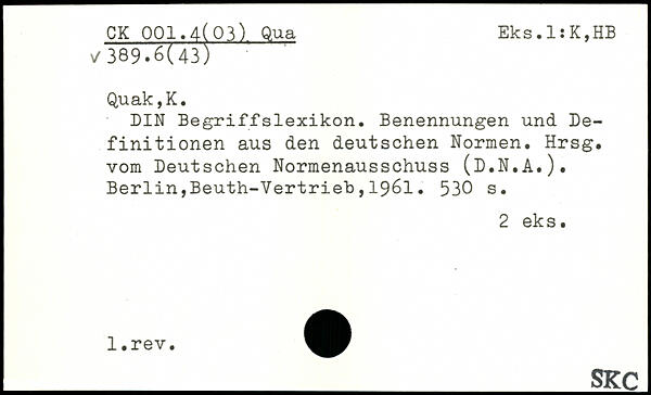 DIN Begriffslexikon. Benennungen und Definitionen aus den deutschen Normen. Hrsg, vom Deutschen Normenausschuss (D.N.A.).