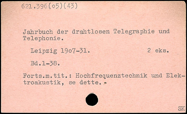 Jahrbuch der drahtlosen Telegraphie und Telephonie. Leipzig 19o7-31. 2 eks.