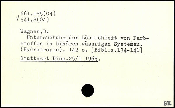 Untersuchung der Löslichkeit von Farbstoffen in binären wässrigen Systemen. (Hydrotropie).