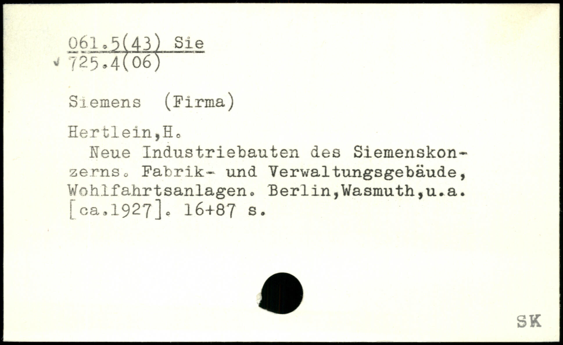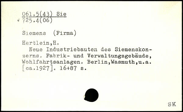 Hertlein,H0 Neue Industriebauten des Siemenskon, ze.rnSo Fabrik, und Verwaltungsgebäude, j Wohlfahrtsanlagen, Berlin,Wasmuth,u.a.