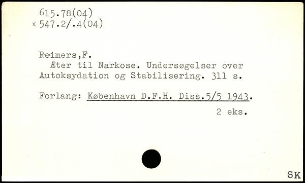 Æter til Narkose. Undersøgelser over Autoksydation og Stabilisering.