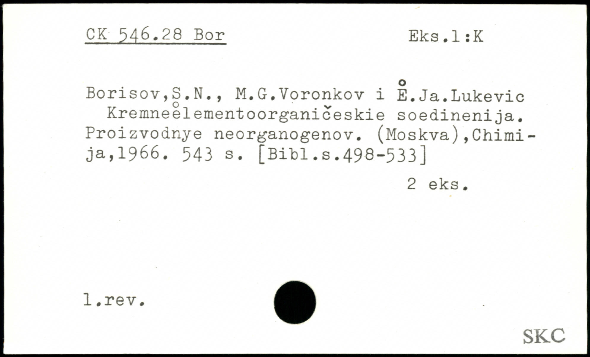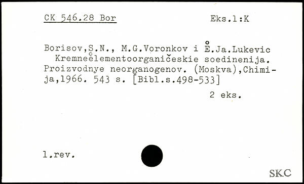 Borisov,S.N., M.G.Voronkov i E.Ja.Lukevic Kremneelementoorganiceskie soedinenija. Proizvodnye neorganogenov. (Moskva),Chimi-ja,1966.