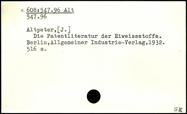 Die Patentliteratur der Eiweissstoffe.