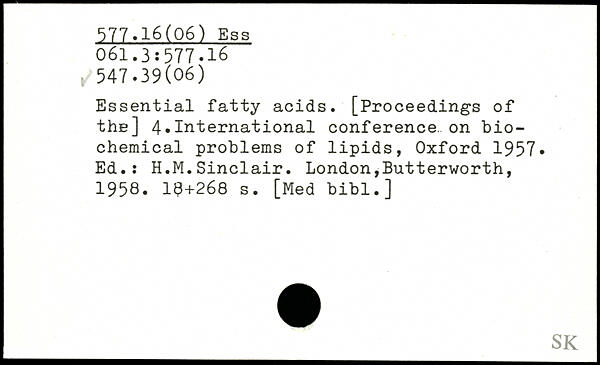 Essential fatty acids. [Proceedings of the] 4.International conference, on biochemical problems of lipids
