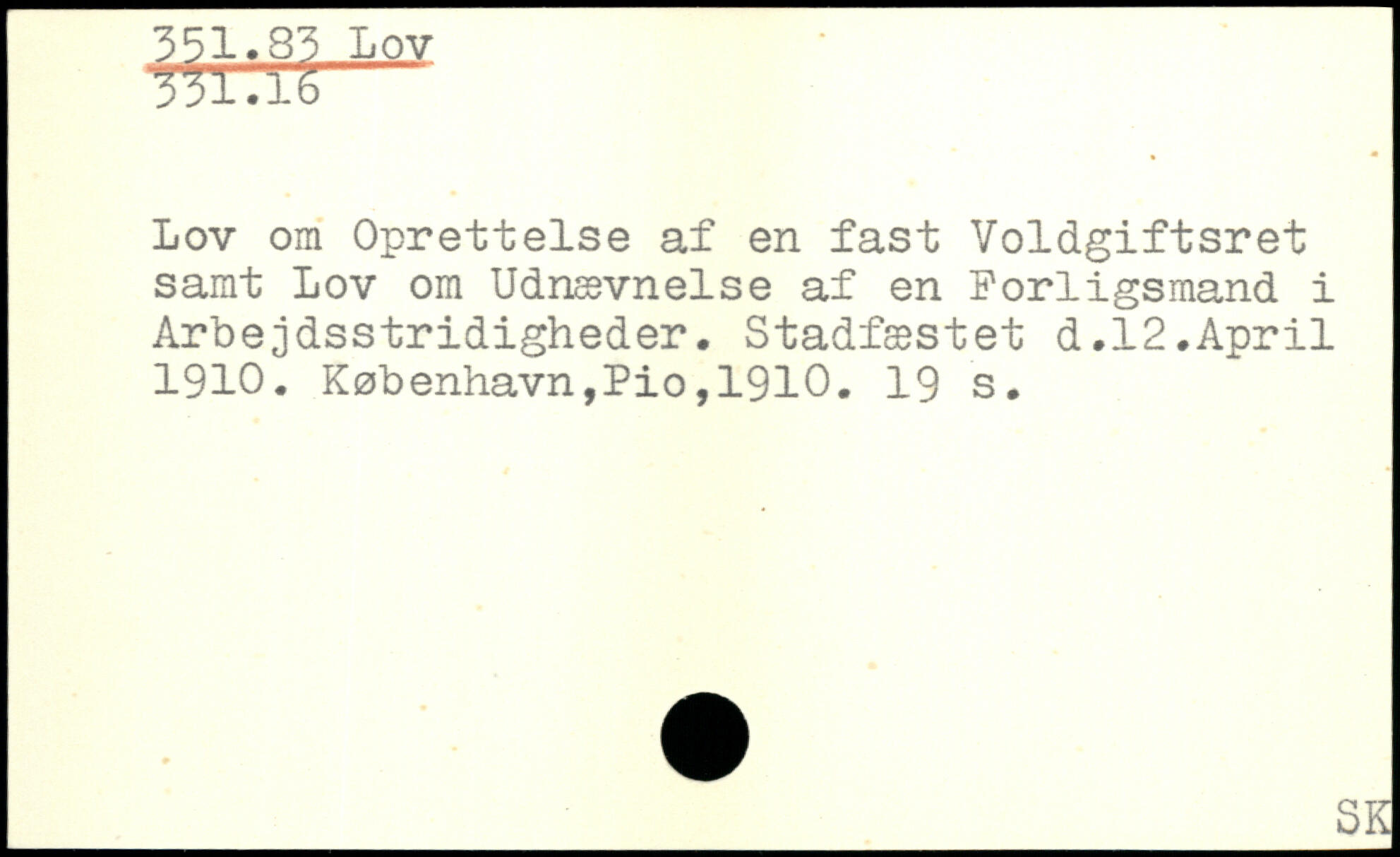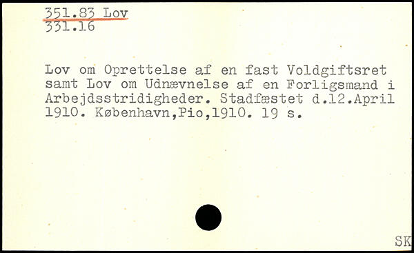 Lov om Oprettelse af en fast Voldgiftsret samt Lov om Udnævnelse af en Forligsmand i Arbejdsstridigheder. Stadfæstet d.12.April 1910.