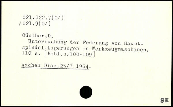Untersuchung der Federung von Hauptspindel-Lagerungen in Werkzeugmaschinen. HO s.