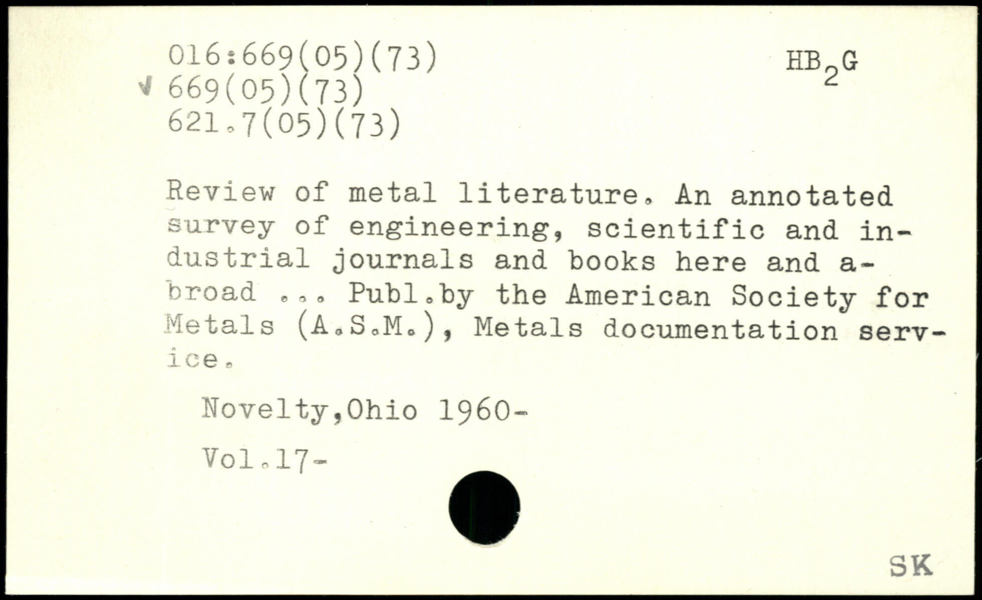 Review of metal literature. An annotated survey of engineering, scientific and industrial journals and books here and a-broad ,,, Publ,by the American Society for Metals (A,SoM0), Metals documentation service 8 Novelty,Ohio 1960-V01017-