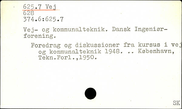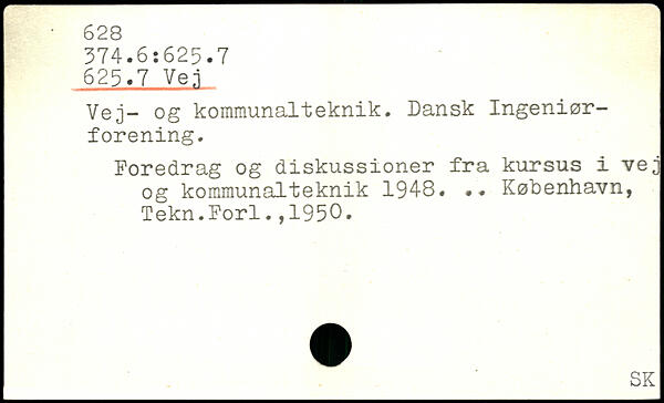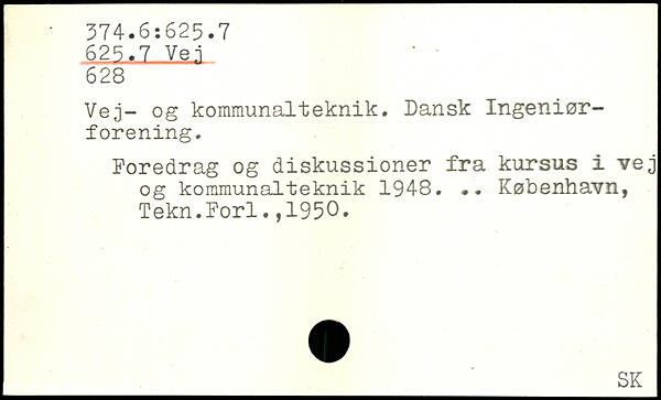 Vej- og kommunalteknik. Dansk Ingeniørforening. Foredrag og diskussioner fra kursus i vej og kommunalteknik 1948. .. København, Tekn.Forl.,1950.