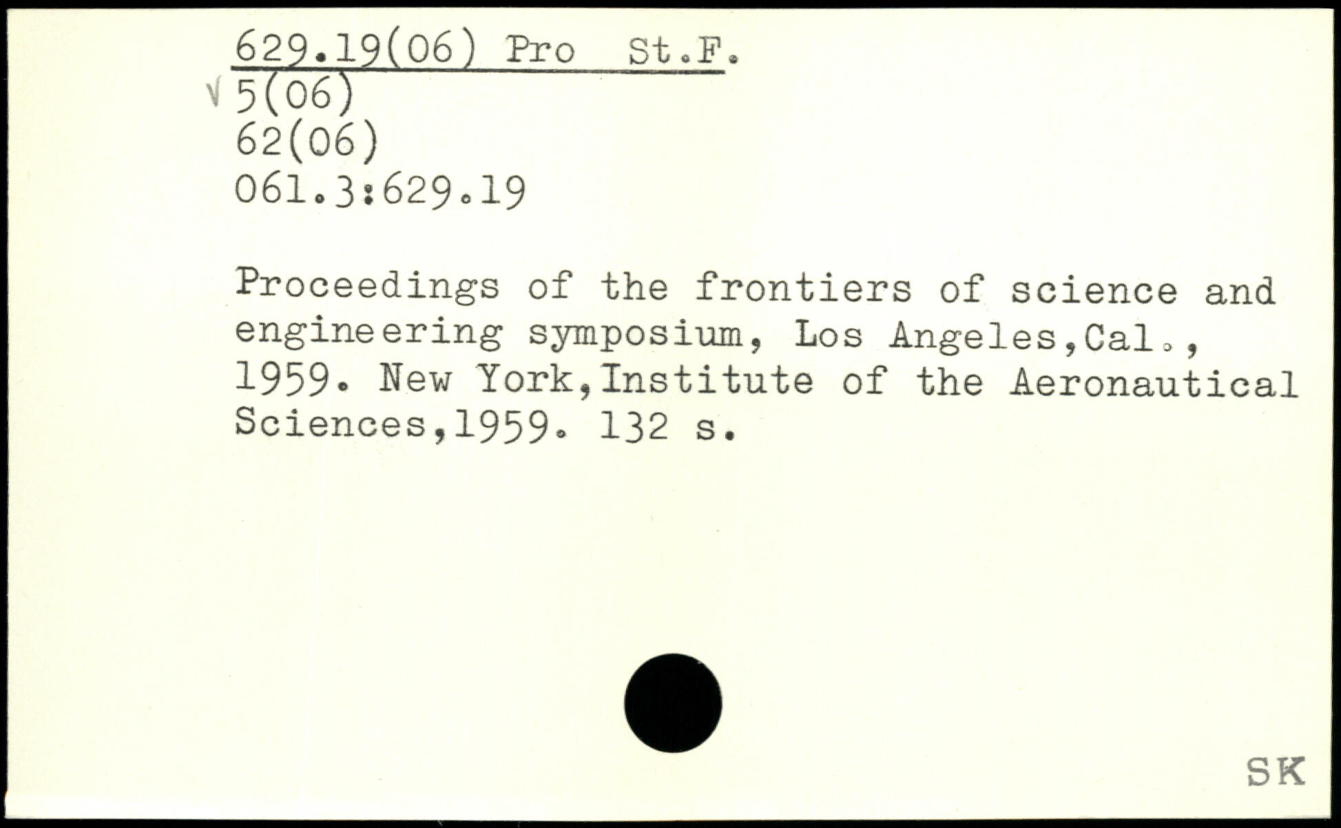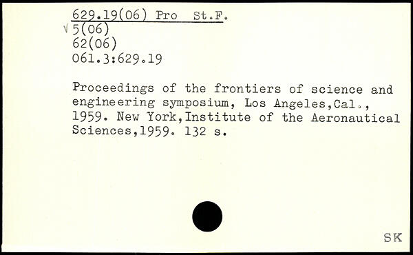 Proceedings of the frontiers of science and engineering symposium, Los Angeles,Cal,, 1959- New York,Institute of the Aeronautical Sciences,1959.