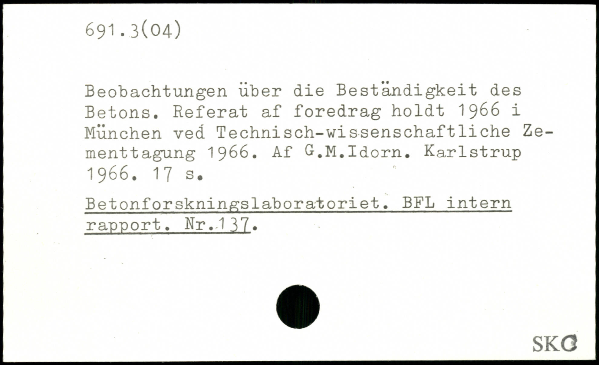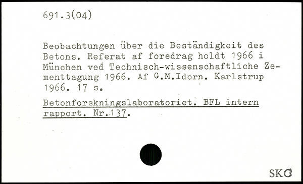 Beobachtungen über die Beständigkeit des Betons. Referat af foredrag holdt 1966 i München ved Technisch-wissenschaftliche Ze-menttagung 1966. Af G.M.Idorn. Karlstrup 1966.