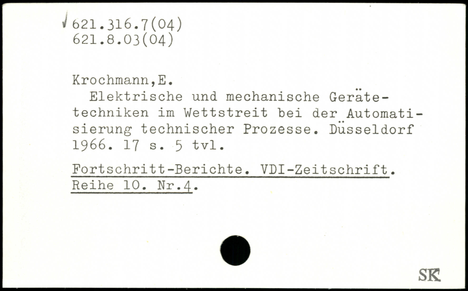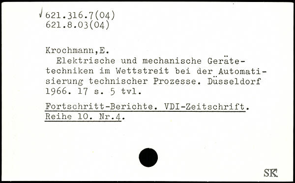 Elektrische und mechanische Geratetechniken im Wettstreit hei der Automatisierung technischer Prozesse. Düsseldorf 1966.