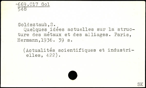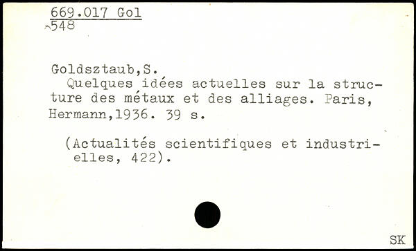 Quelques idées actuelles sur la structure des métaux et des alliages.