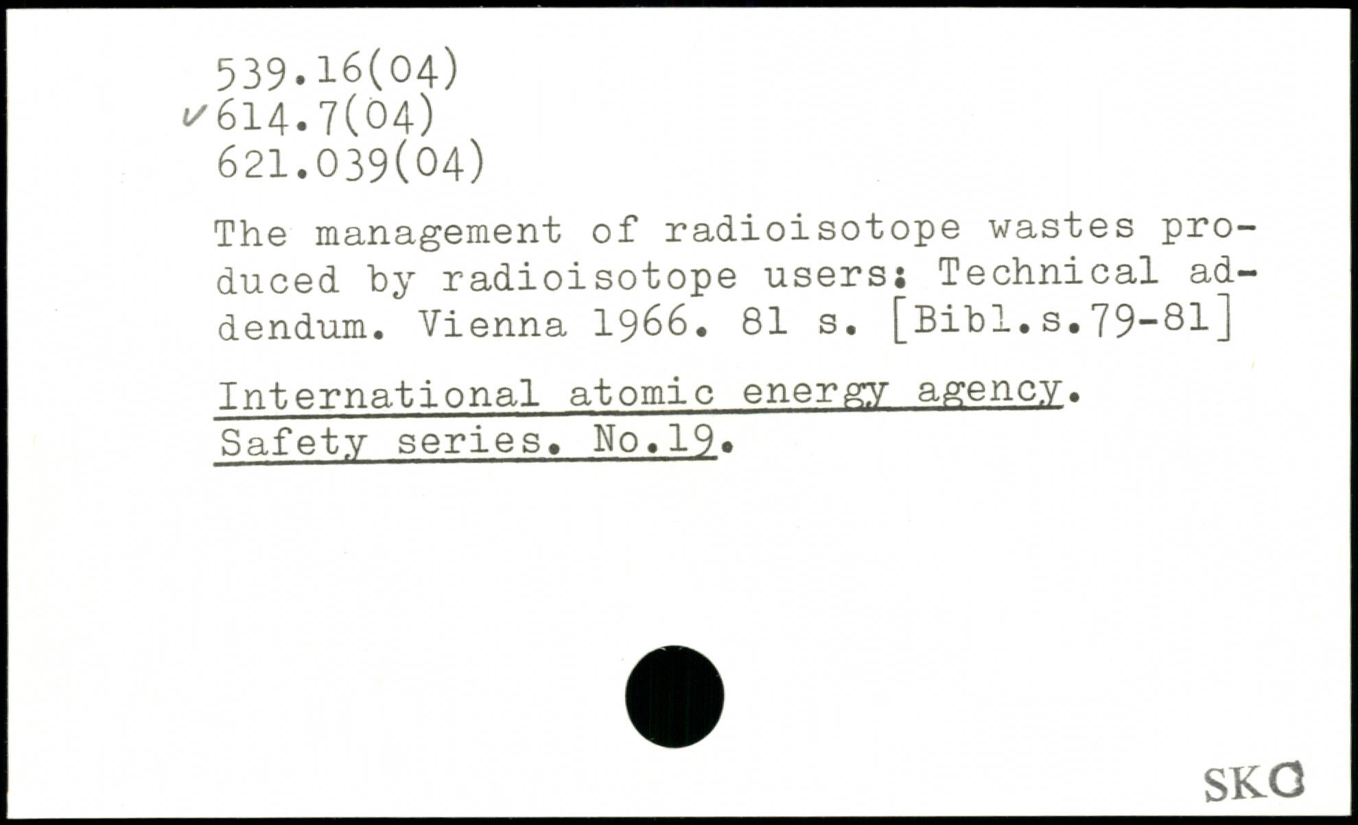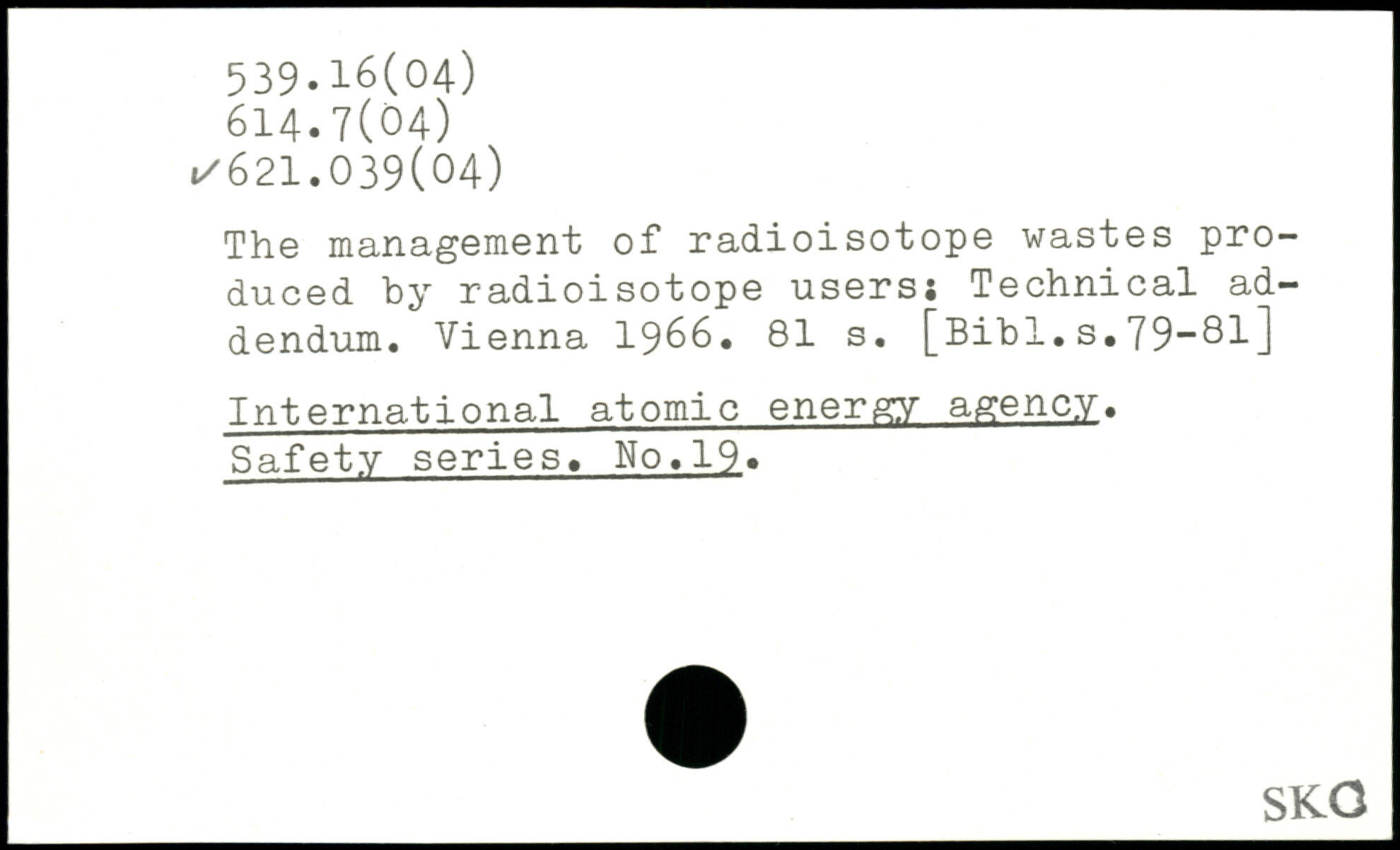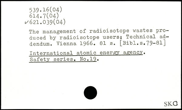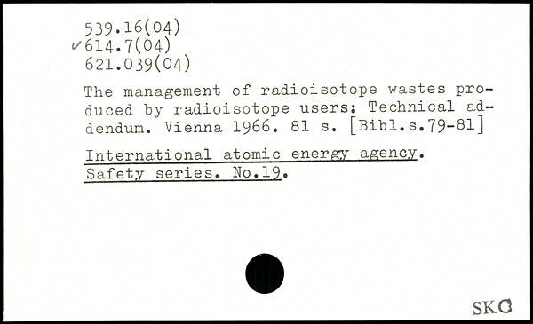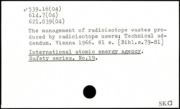 The management of radioisotope wastes produced by radioisotope users; Technical addendum. Vienna 1966.