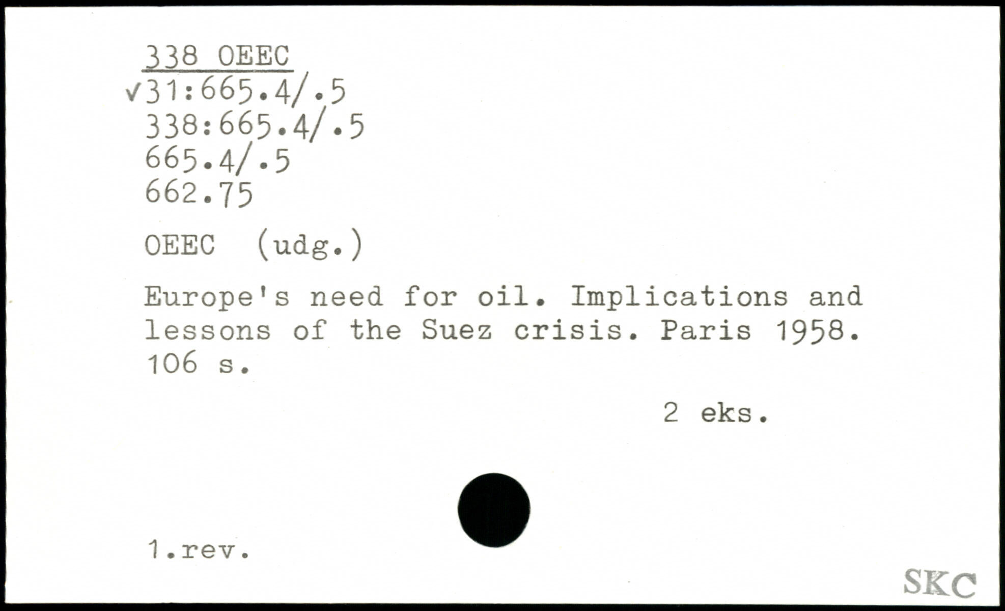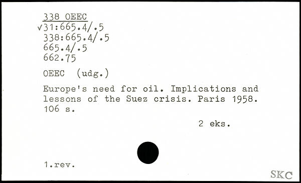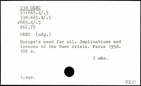 Europe’s need for oil. Implications and lessons of the Suez crisis.