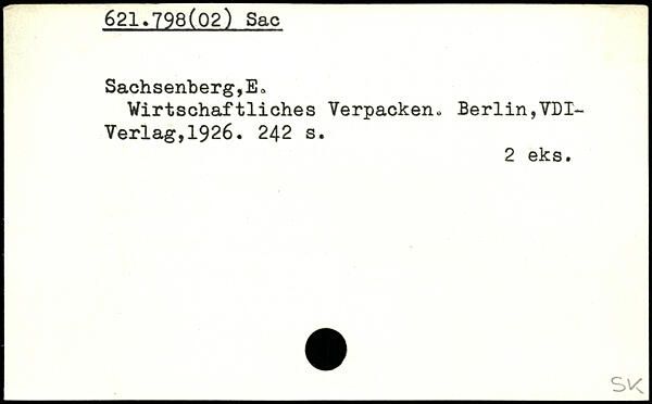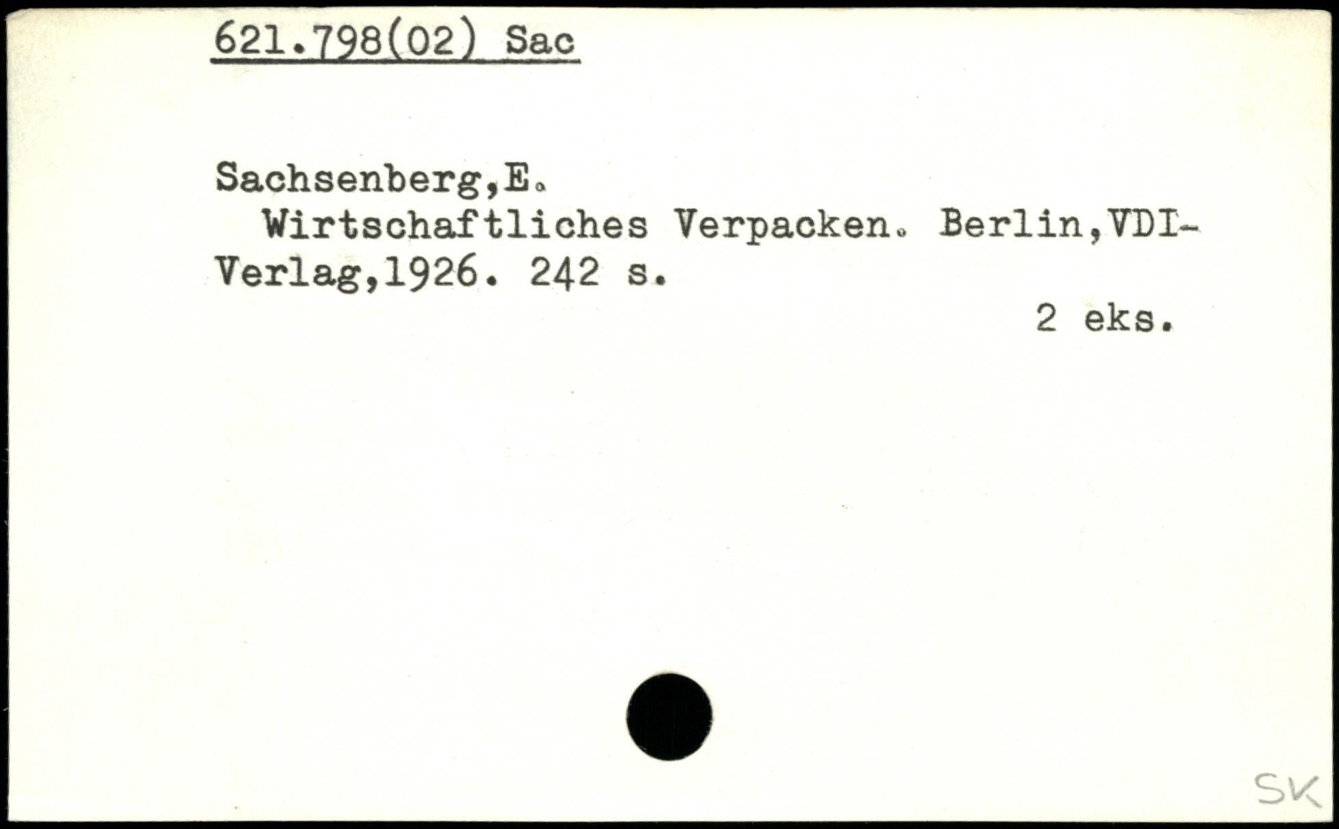 Wirtschaftliches Verpacken. Berlin,VDI~ Verlag,1926.