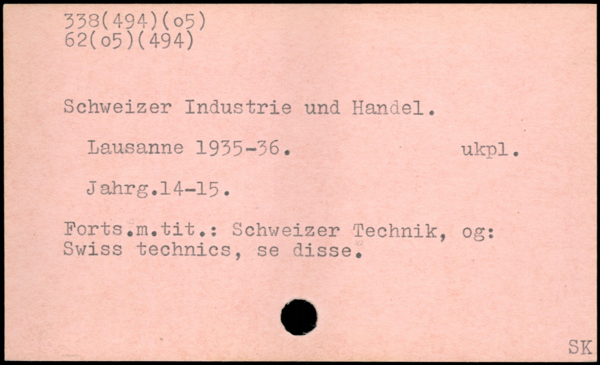 Schweizer Industrie und Handel. Lausanne 1935-36. ukpl. J ahrg.14-15. Ports.m.tit.: Schweizer Technik, og: Swiss technics, se disse.