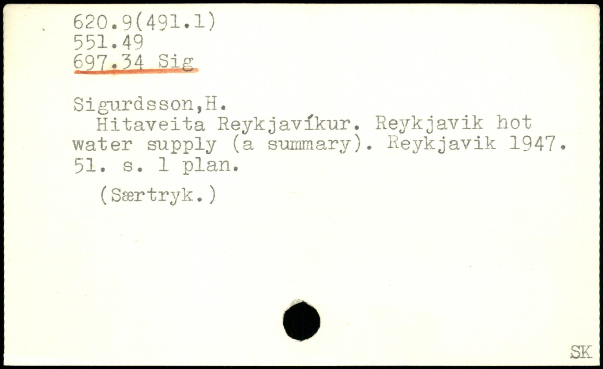 Hitaveita Reykjavikur. Reykjavik hot water supply (a suiamary). Reykjavik 1947. 51. s. 1 plan.