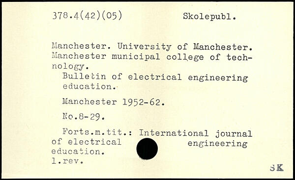Manchester. University of Manchester. Manchester municipal college of technology. Bulletin of electrical engineering education.