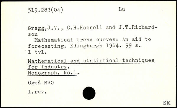 Mathematical trend curves: An aid to forecasting. Edingburgh 1964.