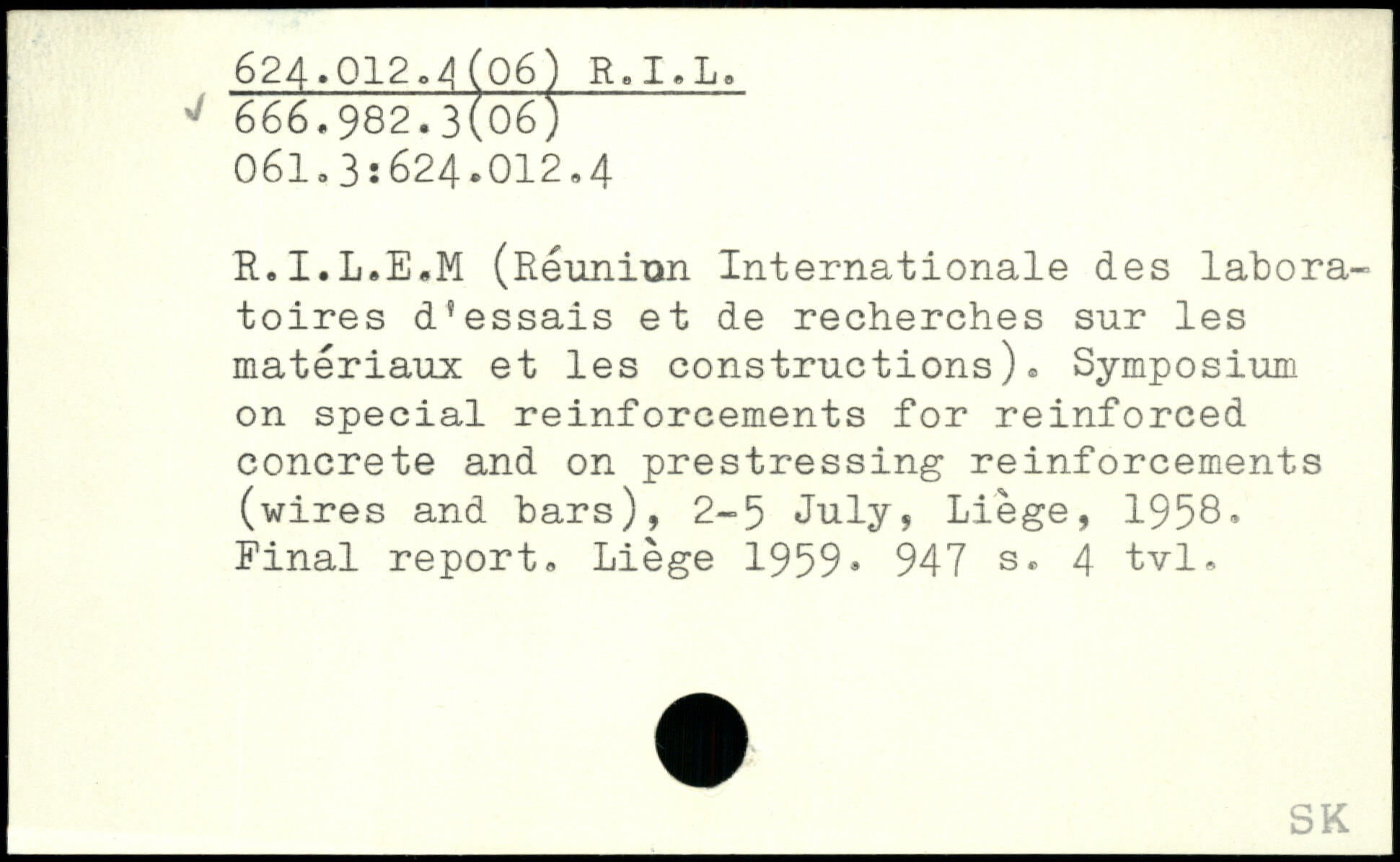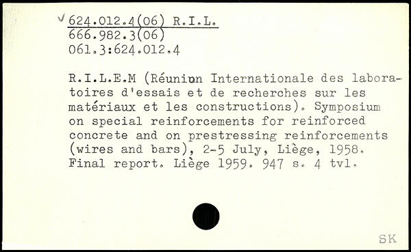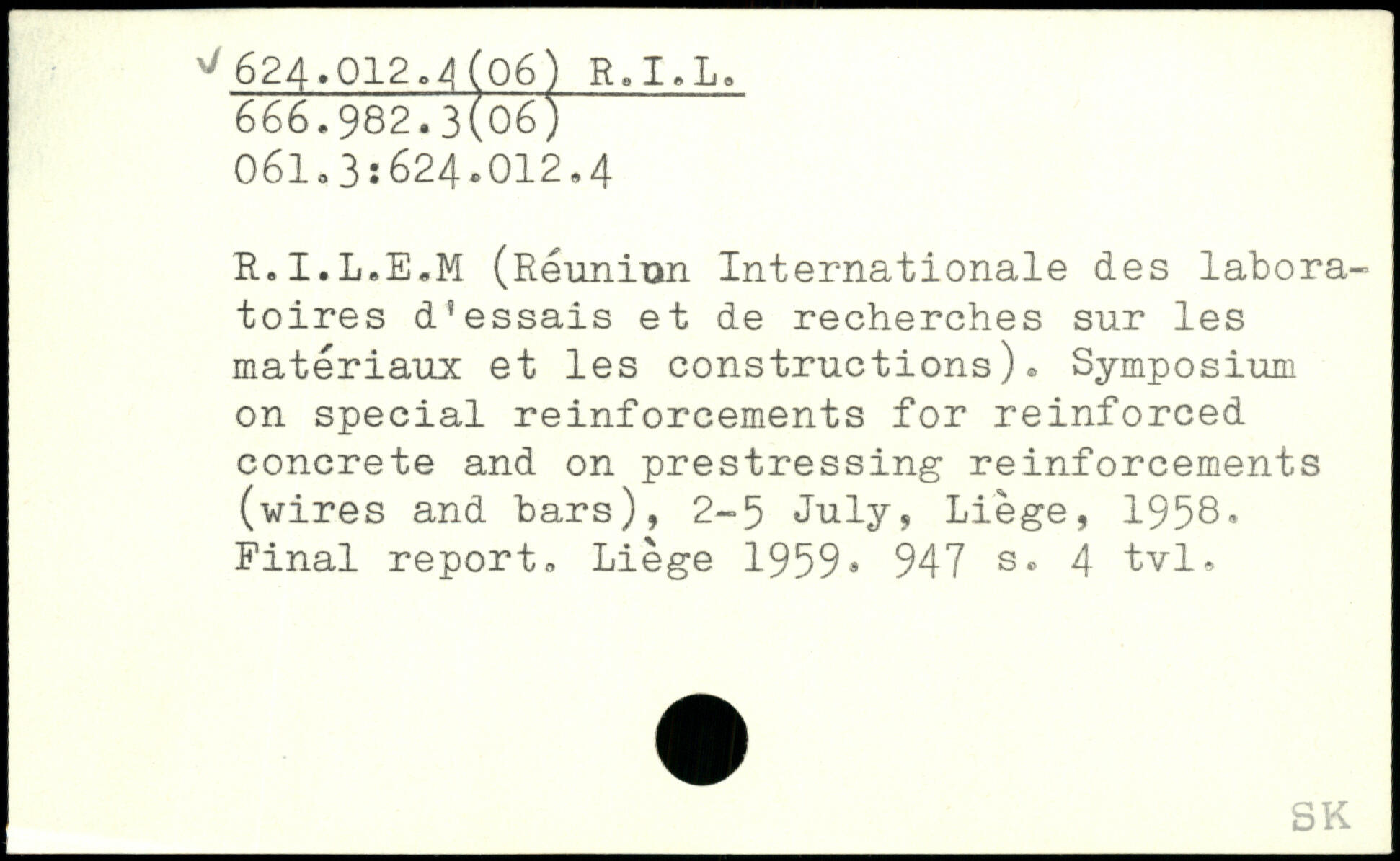 R.I.L.E.M (Reunion Internationale des laboratoires d'essais et de recherches sur les matériaux et les constructions). Symposium on special reinforcements for reinforced concrete and on prestressing reinforcements (wires and bars), 2-5 July, Liège, 1950. Final report. Liège 1959