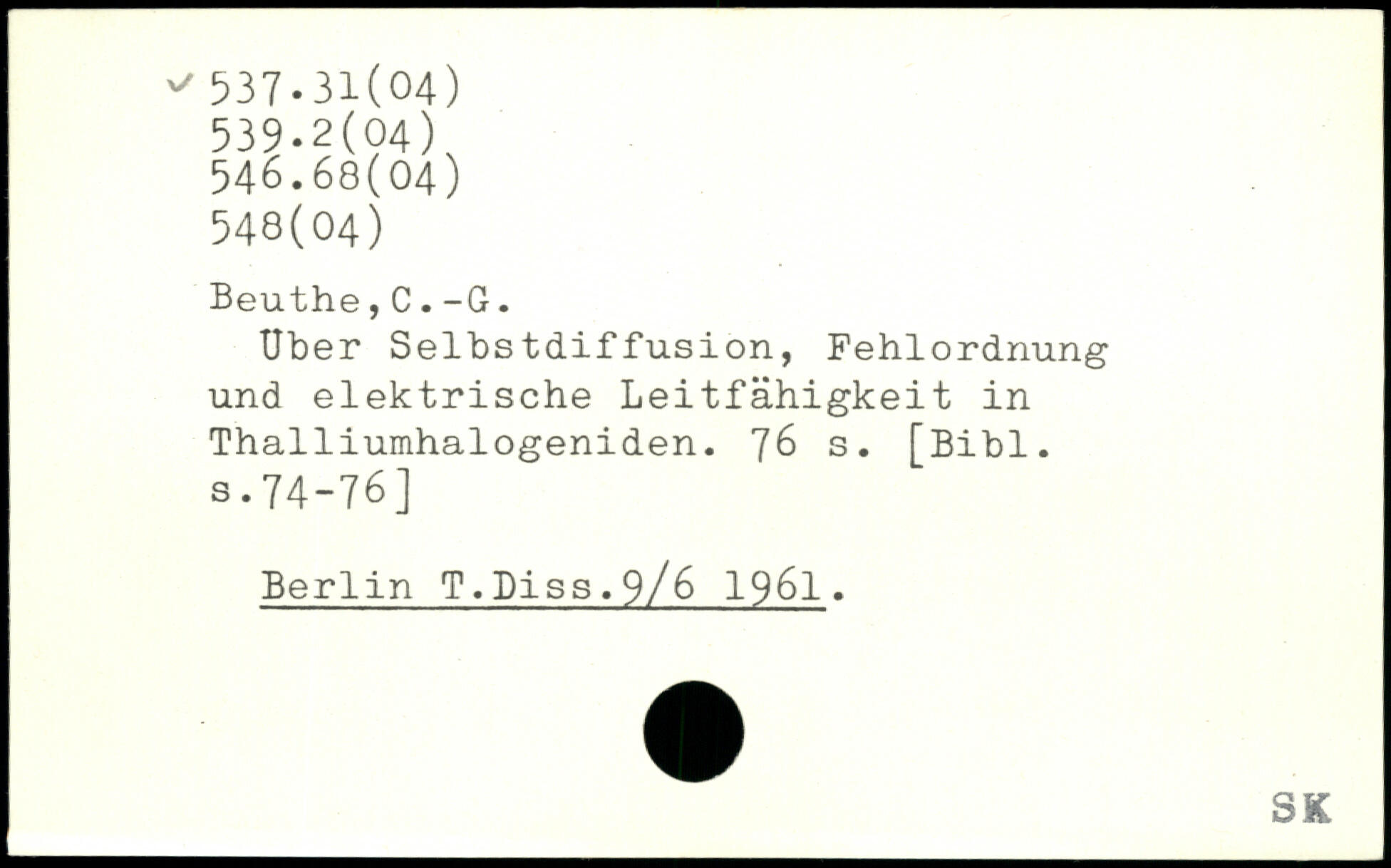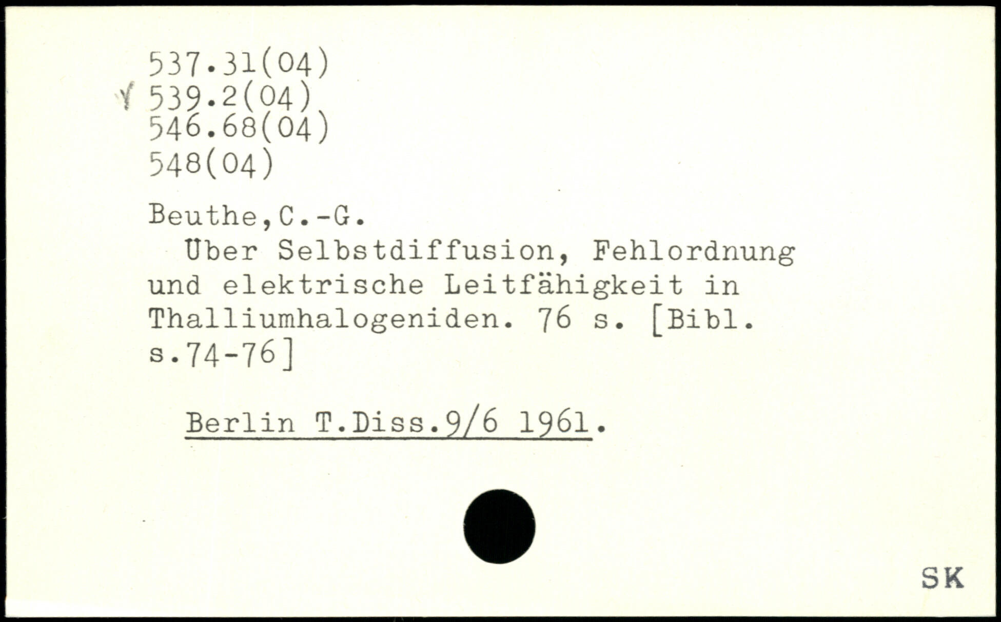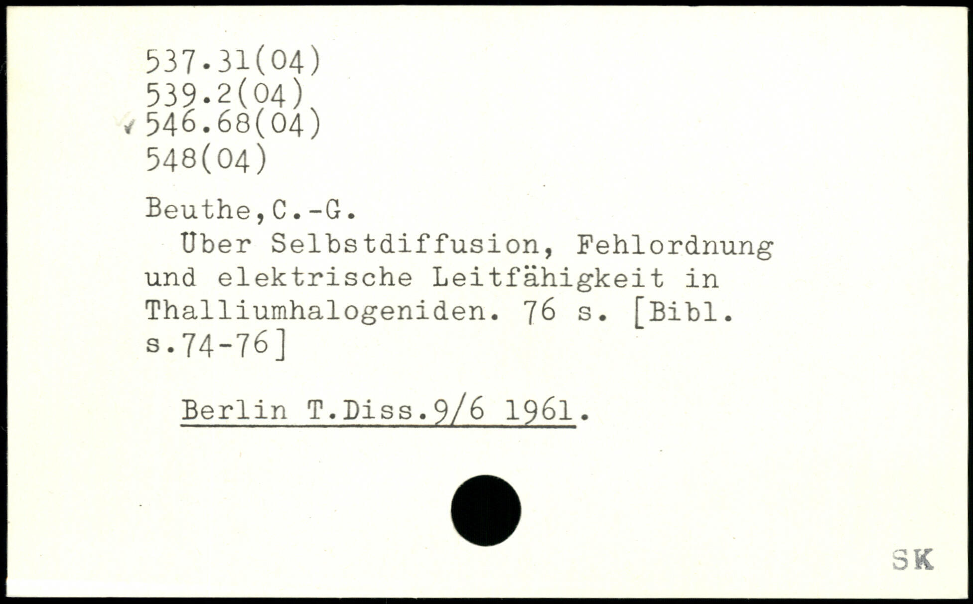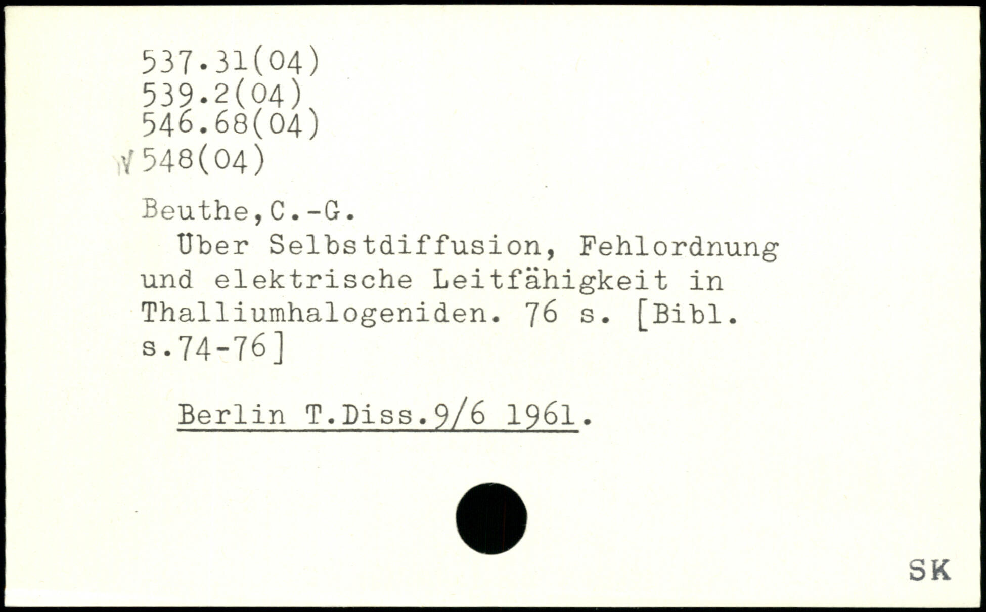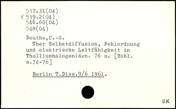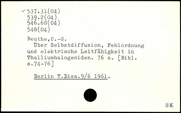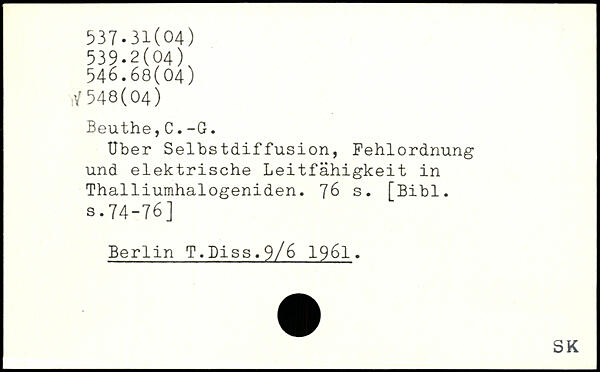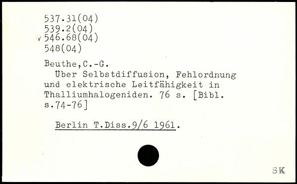 Uber Selbstdiffusion, Fehlordnung und elektrische Leitfähigkeit in Thalliumhalogeniden.