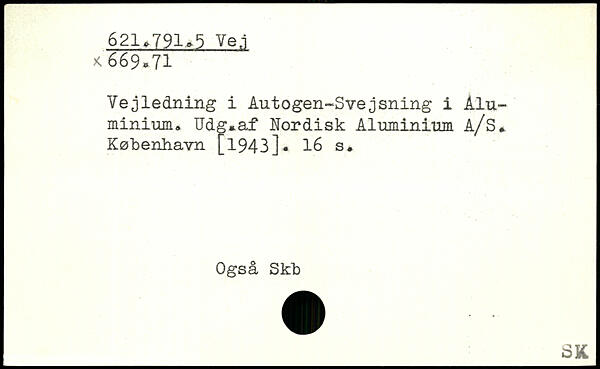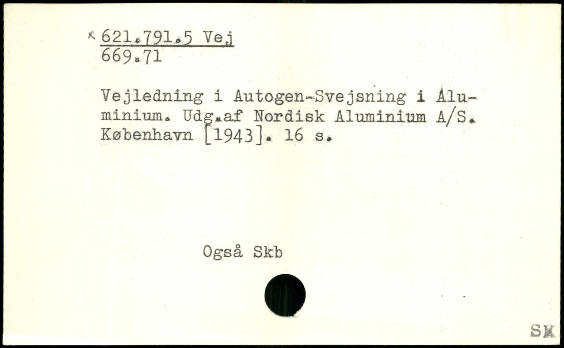 Vejledning i Autogen~Svejsning i Aluminium. Udg.af Nordisk Aluminium A/s.