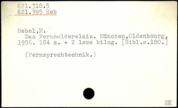 Das Fernmeläerelais. München,Oldenbourg. 1956. 184- s. + 2 lese bilag.
