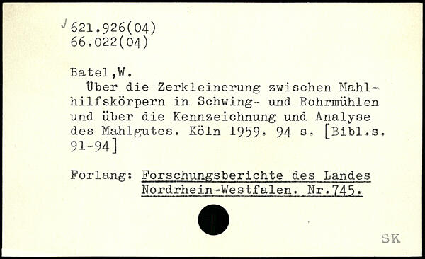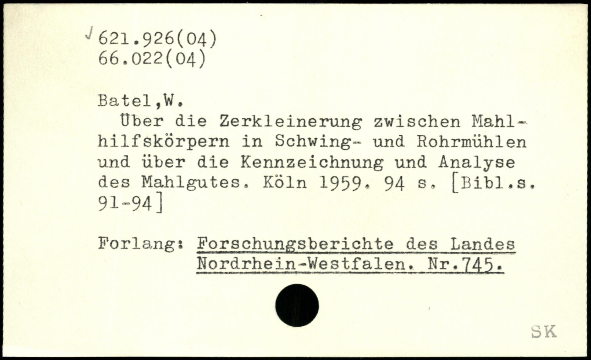 Uber die Zerkleinerung zwischen Mahl-hilfskörpern in Schwing- und Rohrmühlen und über die Kennzeichnung und Analyse des Mahlgutes.