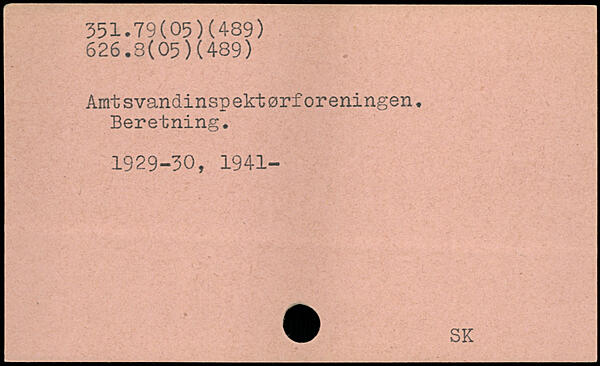 Amtsvandinspektørforeningen. Beretning. 1929-30, 1941-