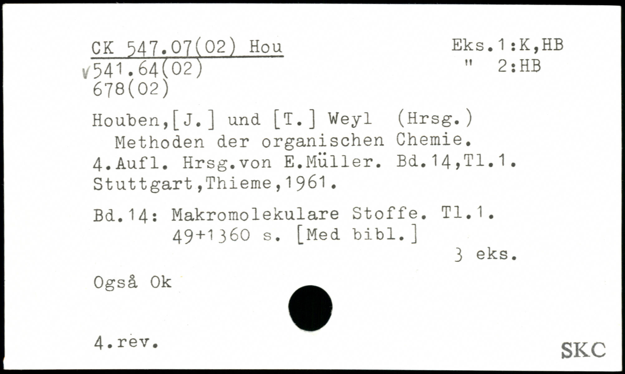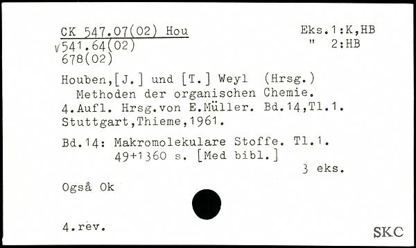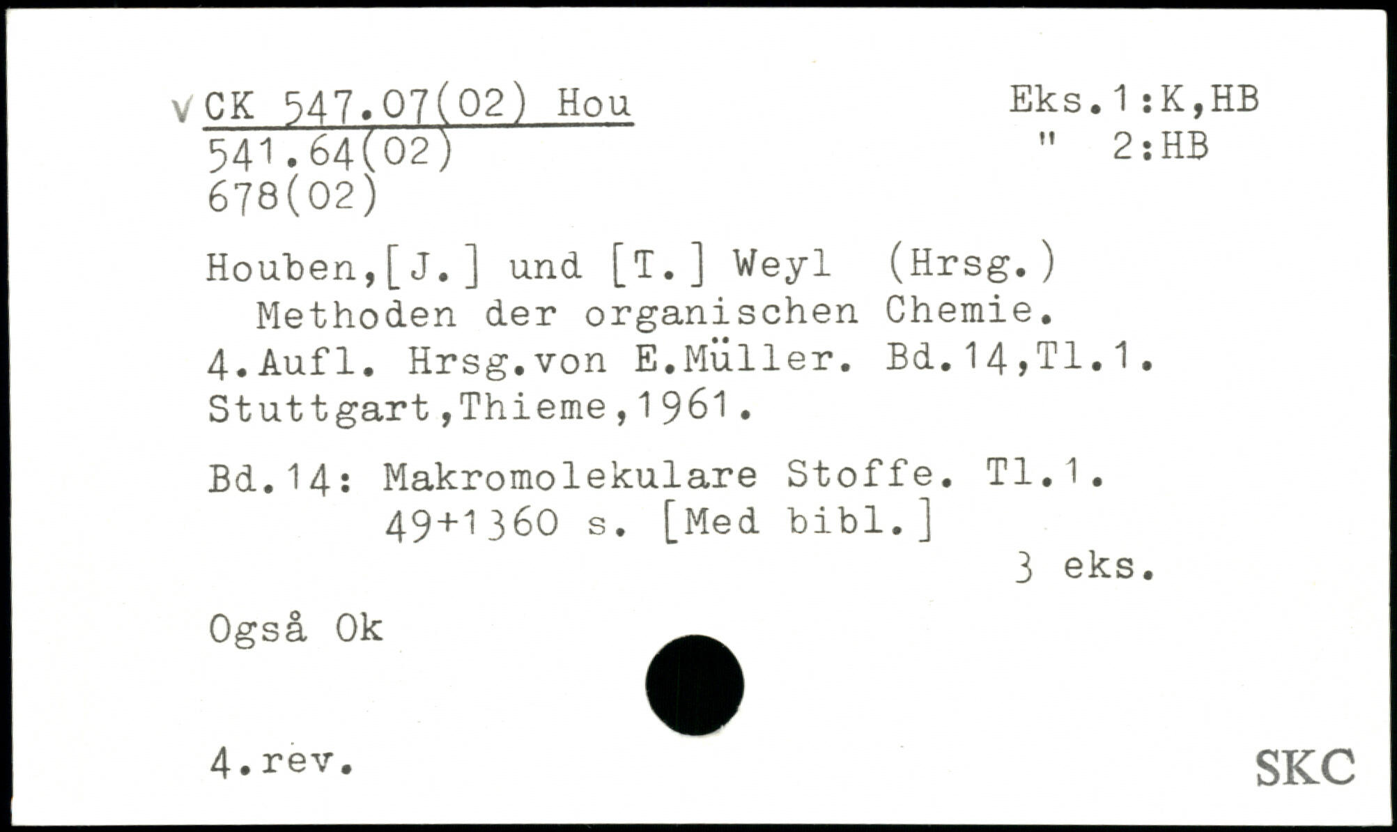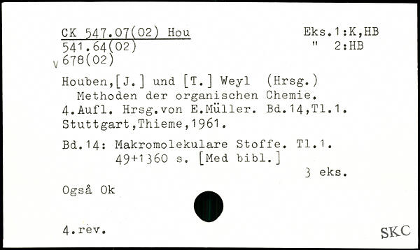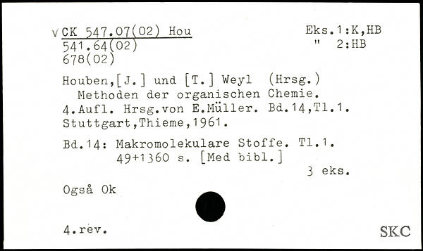 Houben, [ J. ] und [T.] Weyl (Hrsg.) Methoden der organischen Chemie.