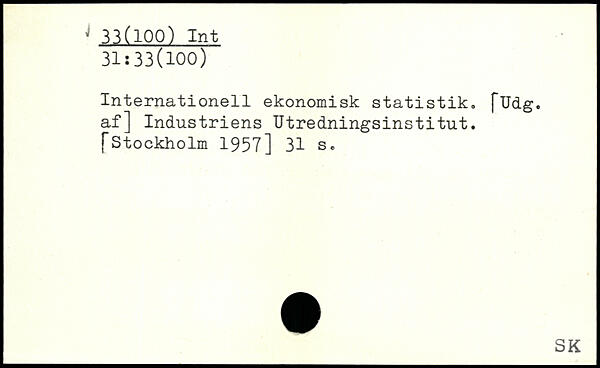 Internationell ekonomisk statistik. fUdg. af] Industriens Utredningsinstitut. ("