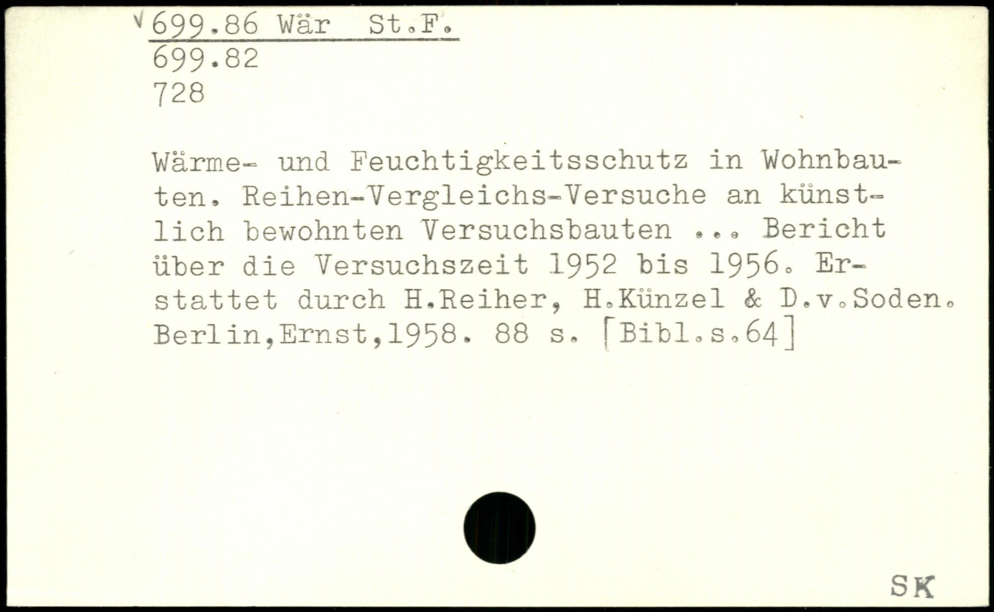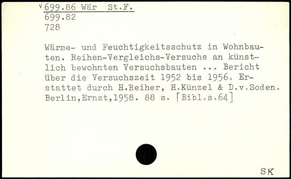 Wärme- und Feuchtigkeitsschutz in Wohnbauten, Reihen-Yergleichs-Yersuche an künstlich bewohnten Yersuchsbauten ... Bericht über die Yersuchszeit 1952 bis 1956c Erstattet durch H.Reiher, ELKünzel & D.
