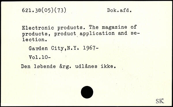 Electronic products. The magazine of products, product application and selection. Garden City,N.Yk 1967-