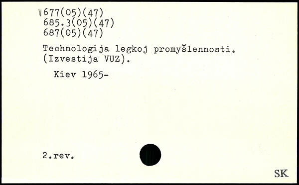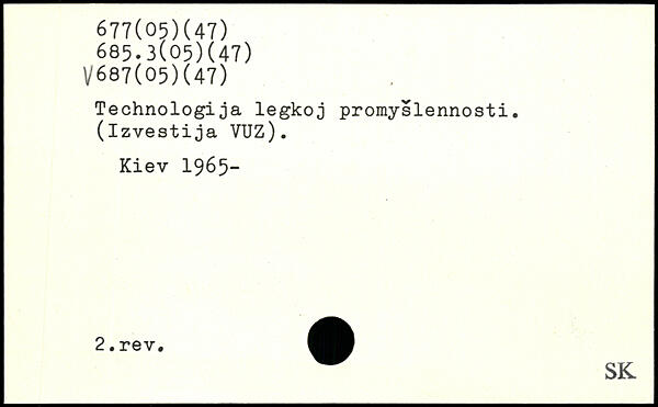 Technologija legkoj promyslennosti. (izvestija VUZ). Kiev 1965-