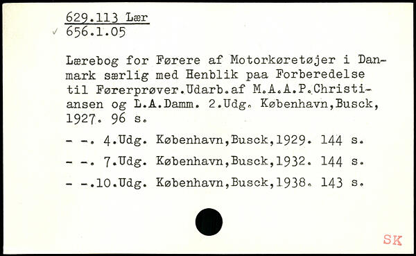 Lærebog for Førere af Motorkøretøjer i Danmark særlig med Henblik paa Forberedelse til Førerprøver.Udarb.af M.A.A.P.Christiansen og L.A.Damm. 2.