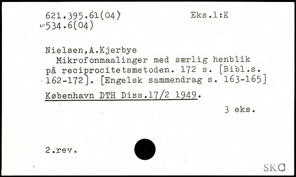 Nielsen,A.Kjerbye Mikrofonmaalinger med særlig henblik på reciprocitetsmetoden.