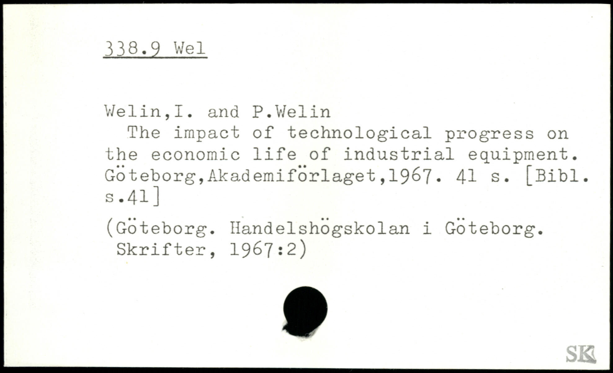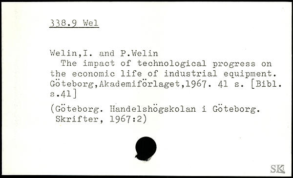 The impact of technological progress on the economic life of industrial equipment. Goteborg,Akademiförlaget,19^7.