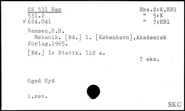 Mekanik. [Bd.] 1. [København] ,Akademisk forlag,1965. [Bd.] 1: Statik.